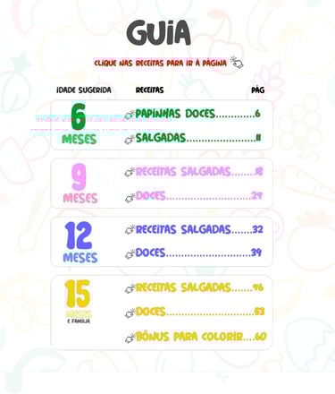 TODOS CAPÍTULOS DE 6 ATÉ 15 MESES | RECEITAS EXTRAS | SUPORTE PARA IMPRESSÃO